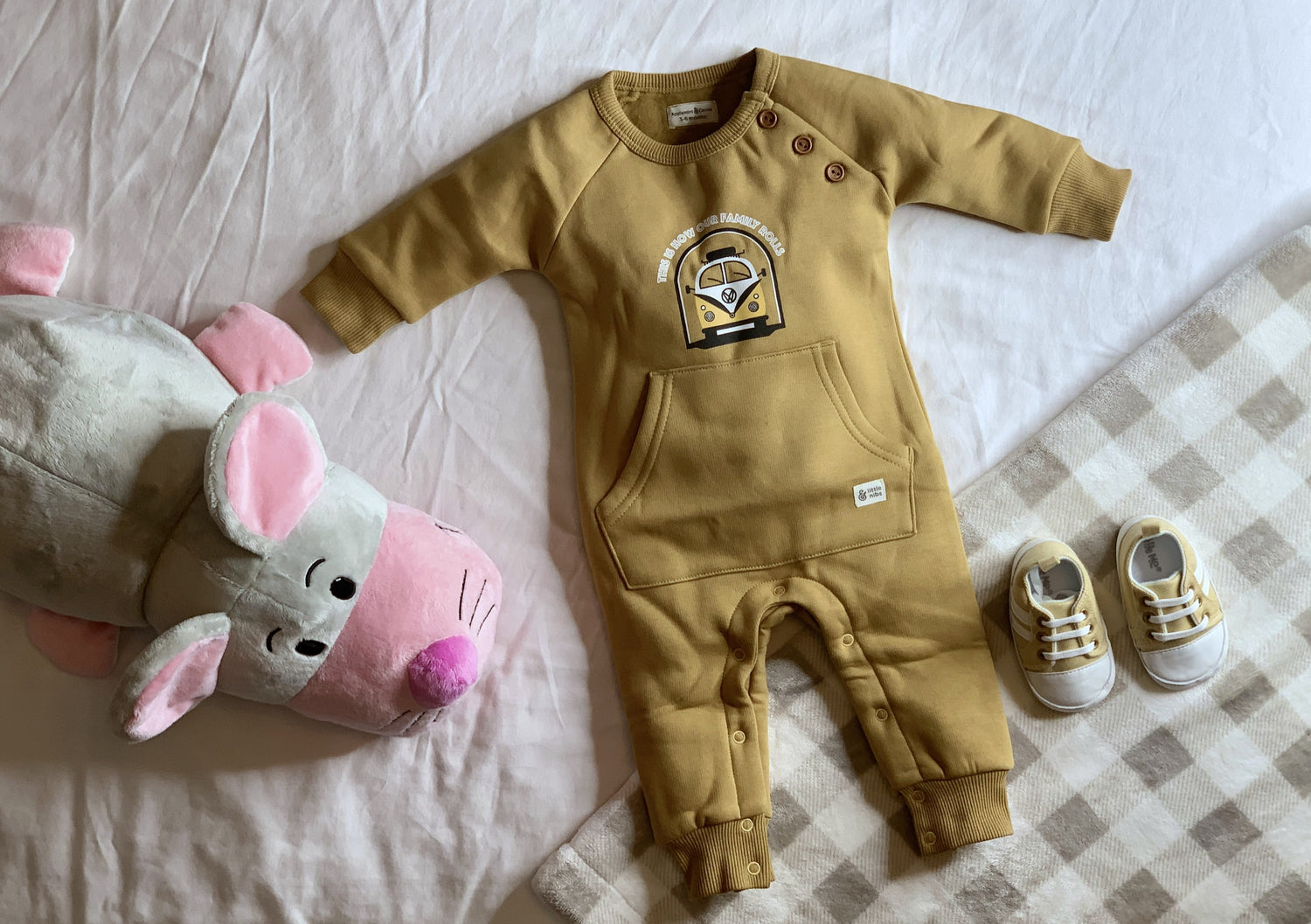 This baby boys onesie is an ultimate blend of comfort and style for your little one featuring a caramel yellow color and fun van design. Made from Egyptian cotton, this caramel yellow onesie is great for any occasion, from family outings to playdates with friends.