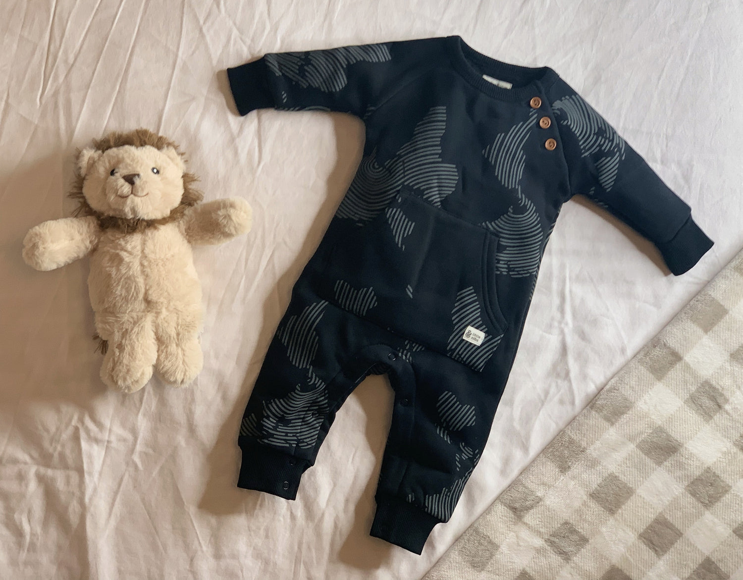 This baby boys onesie is the perfect combination of comfort and style for your little one featuring an army green color and cool electrical board design. The army green onesie gives a touch of ruggedness, making it great for outdoor adventures or playtime at home. Your little peanut will enjoy the soft feel as this onesie is made from Egyptian cotton.